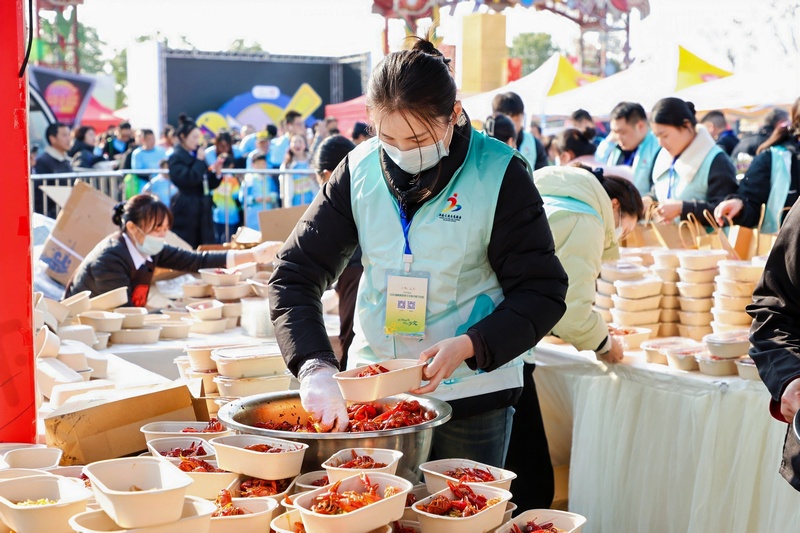 冲过终点线后,一场融合美食、文化与艺术的“南县盛宴”等待选手。完赛区特设非遗互动区,选手可体验传统拓印、花海艺术DIY;美食长廊免费供应南县小龙虾、非遗锅盔、稻虾米煲仔饭等特色小吃,其中“南县小龙虾”作为中国地理标志证明商标产品,以鲜香麻辣的口感征服全场。