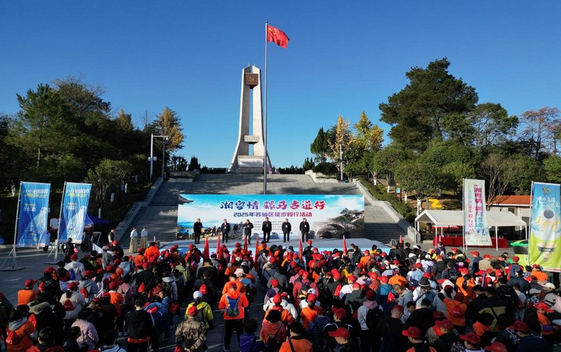 11月29日,初冬的晨光中,近500名徒步爱好者齐聚湘南起义纪念馆前广场,共同开启“湘粤情骡马古道行”2025年苏仙区徒步毅行活动的序幕。这场全程15公里的徒步活动,不仅是一场体能锻炼,更是一次穿越古今的文化体验。