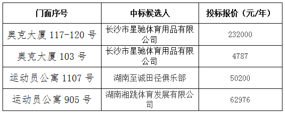 湖南省体育局装备服务中心门面招标项目中标候选人公示(2025年9月)