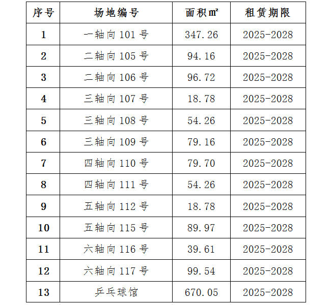 项目名称:郴州体育训练基地乒乓球馆对外公开招租