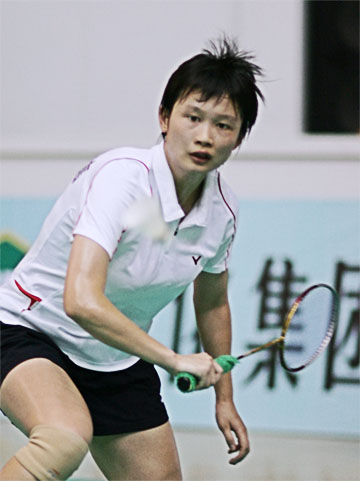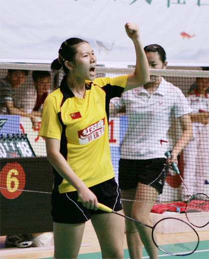 获得省十运会羽毛球女子双打冠军选手胡英姿