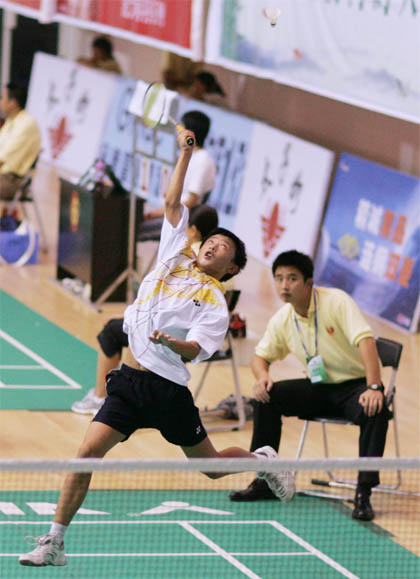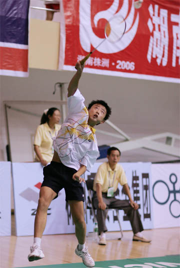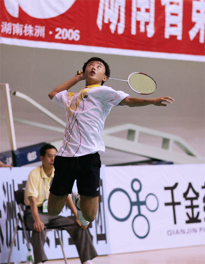 株洲选手董帅在省十运会羽毛球赛的精彩瞬间