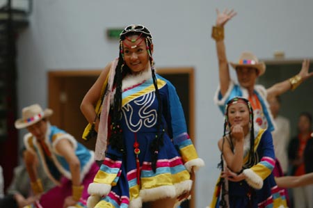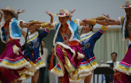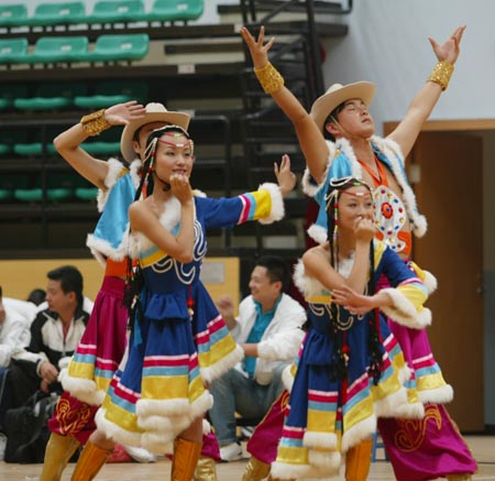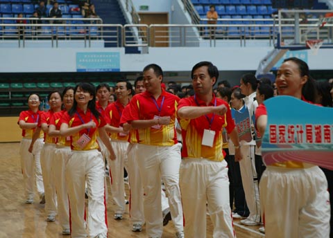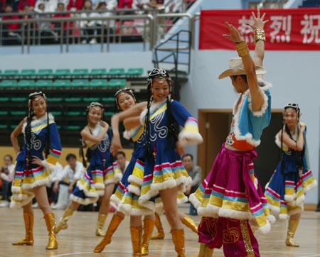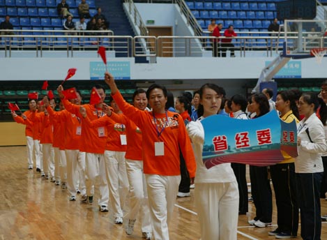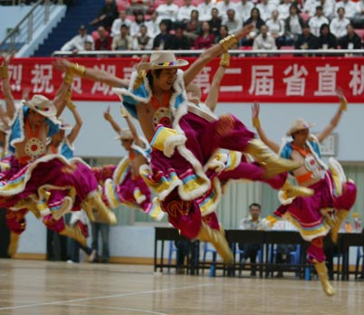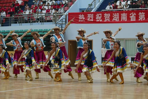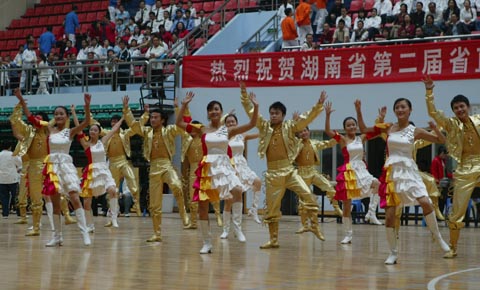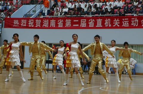 湖南省第二届省直机关运动会,2007年10月12日下午在长沙理工大学体育馆隆重开幕。图为开幕式上的文艺表演。