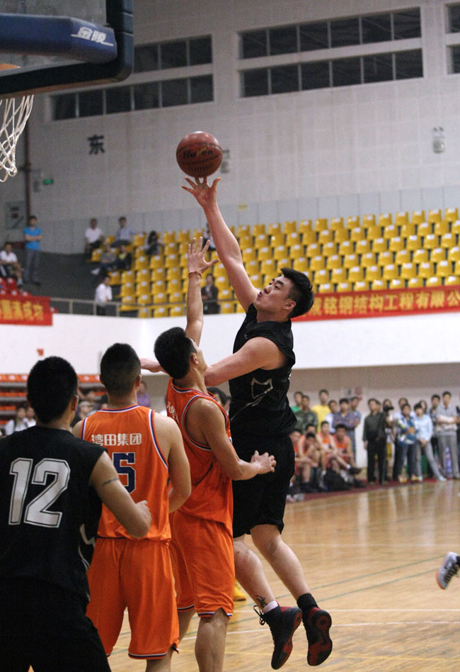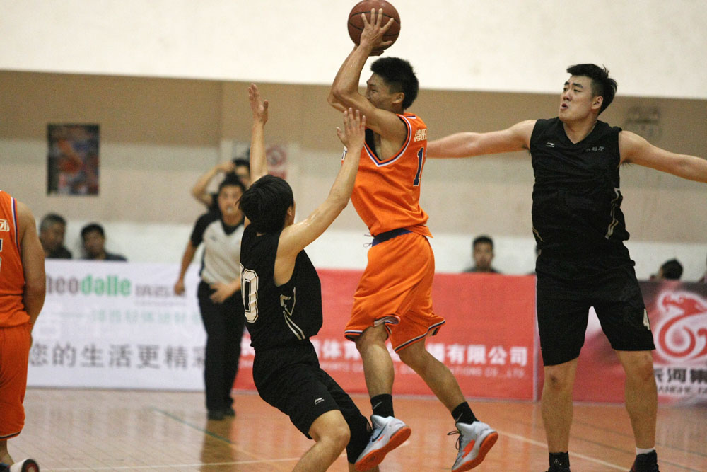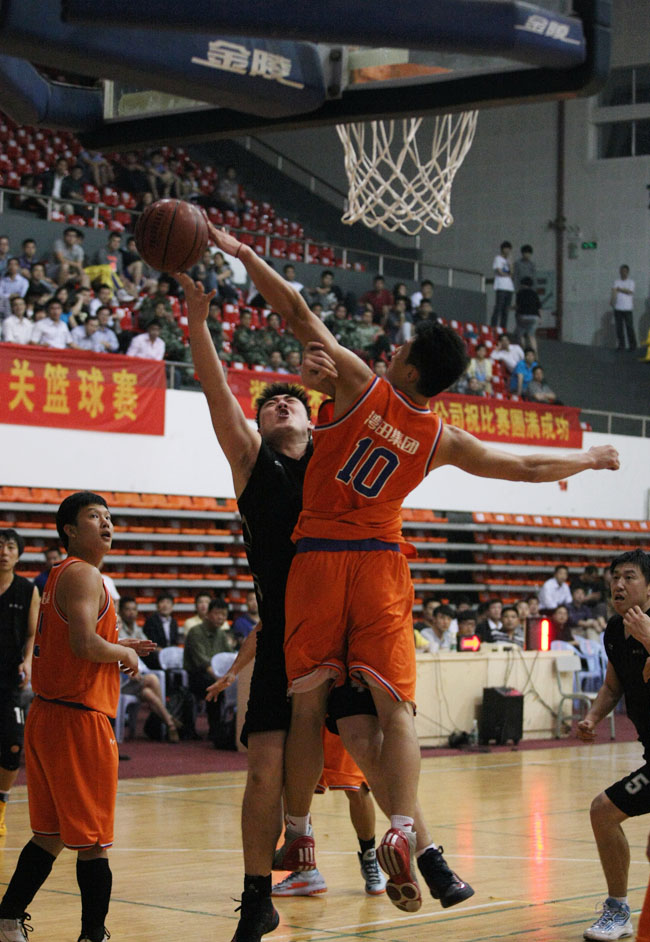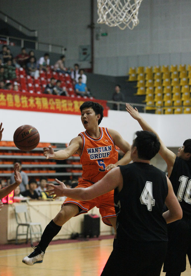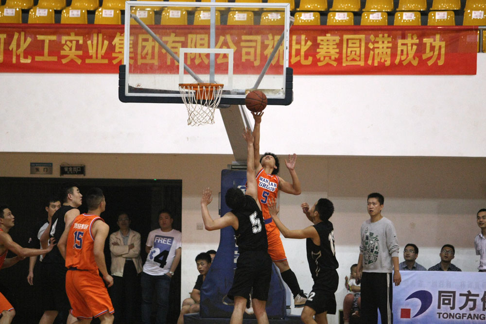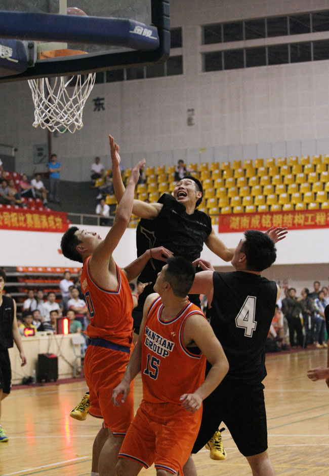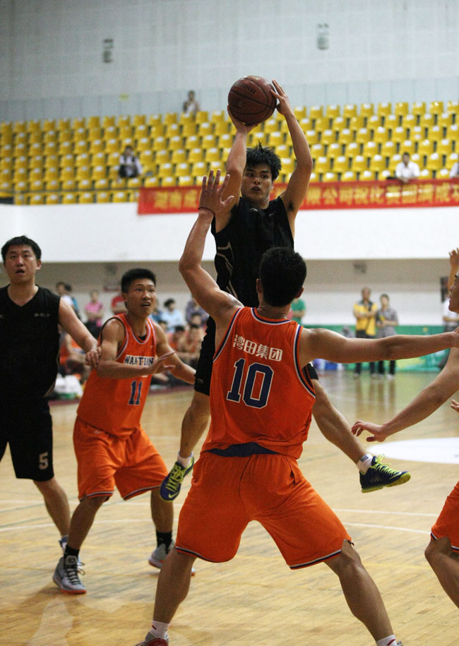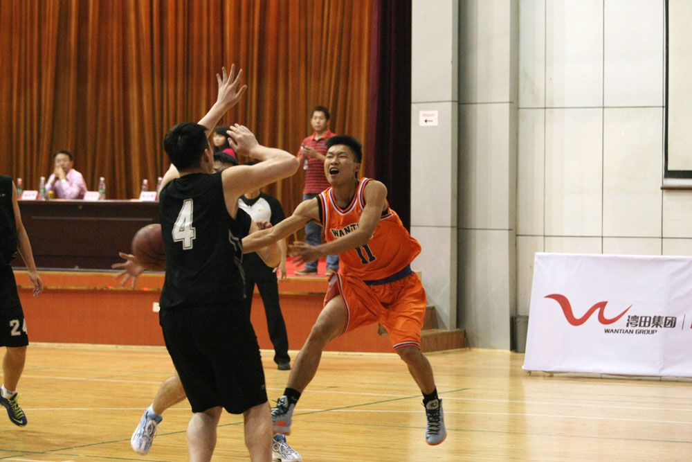图为省水利厅队(黑)与湾田集团队(橙)在总决赛中的精彩瞬间。