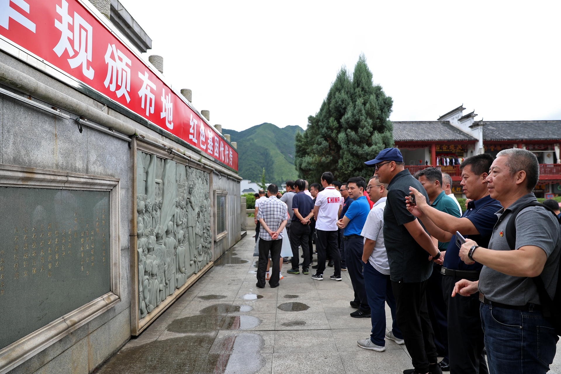 图为与会人员参观“第一军规”颁布纪念地。