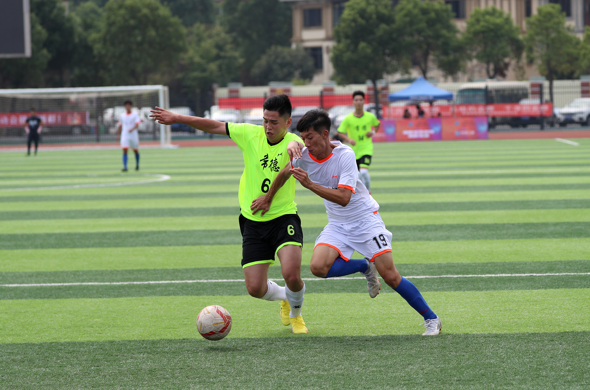 9月9日,湖南省第十四届运动会成年组男子足球比赛继续在湖南理工学院足球场举行。