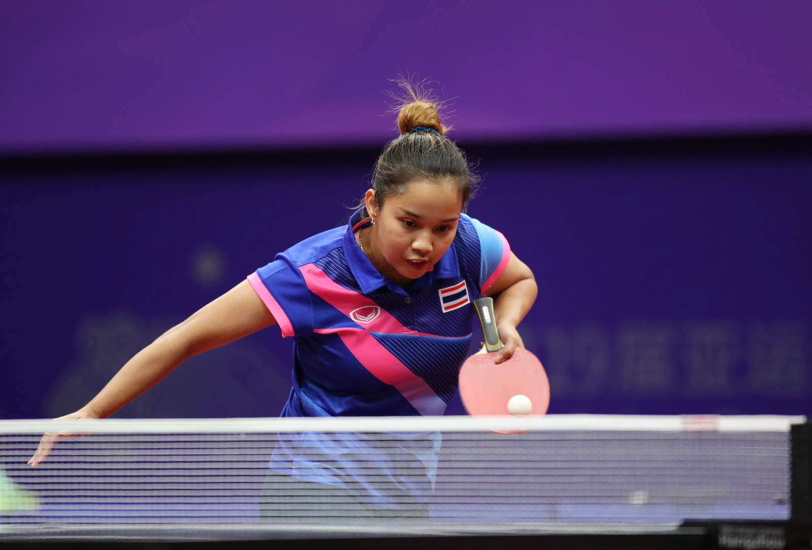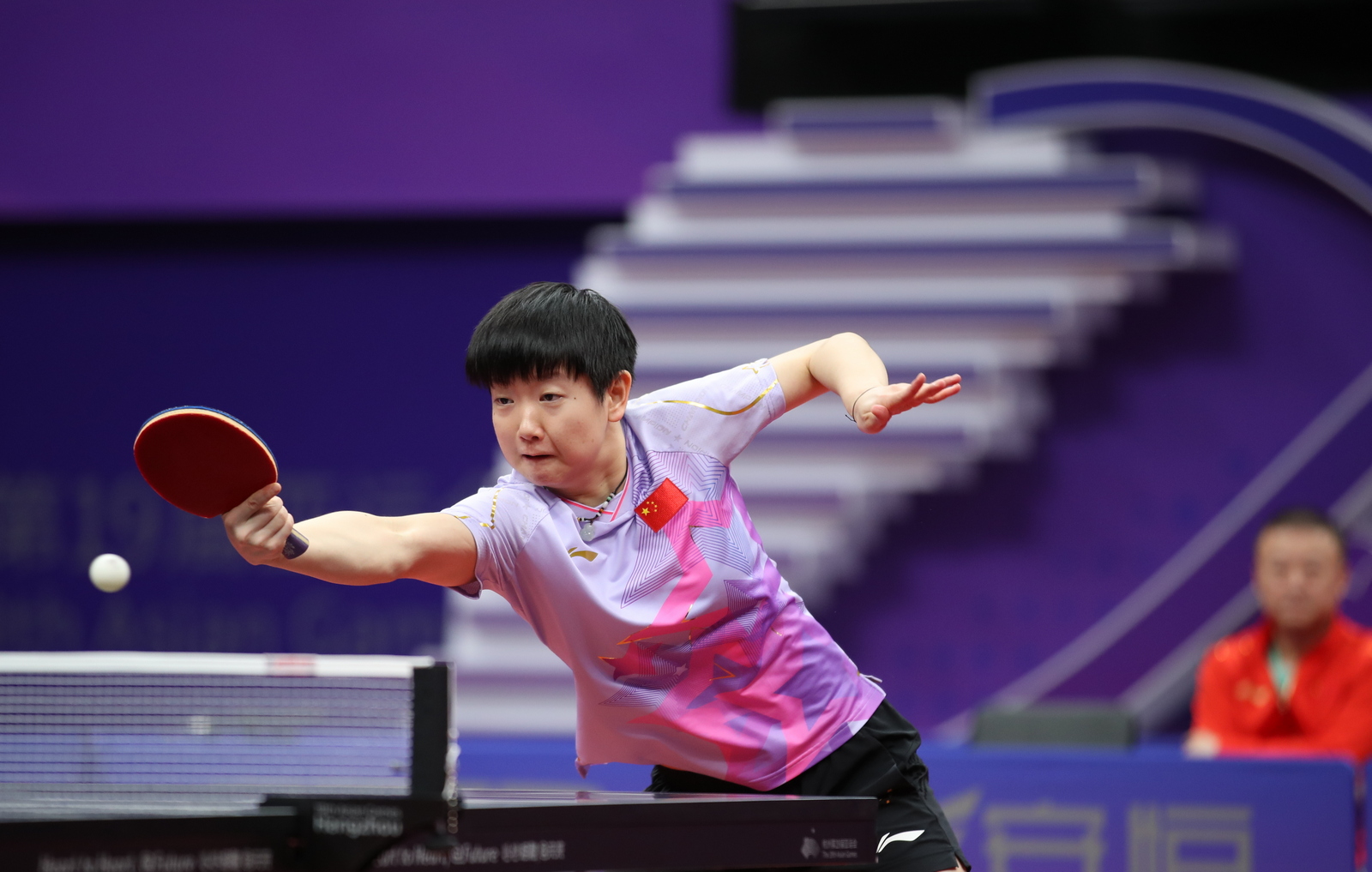 9月29日,第十九届杭州亚运会乒乓球比赛在拱墅运河体育公园体育馆继续进行。