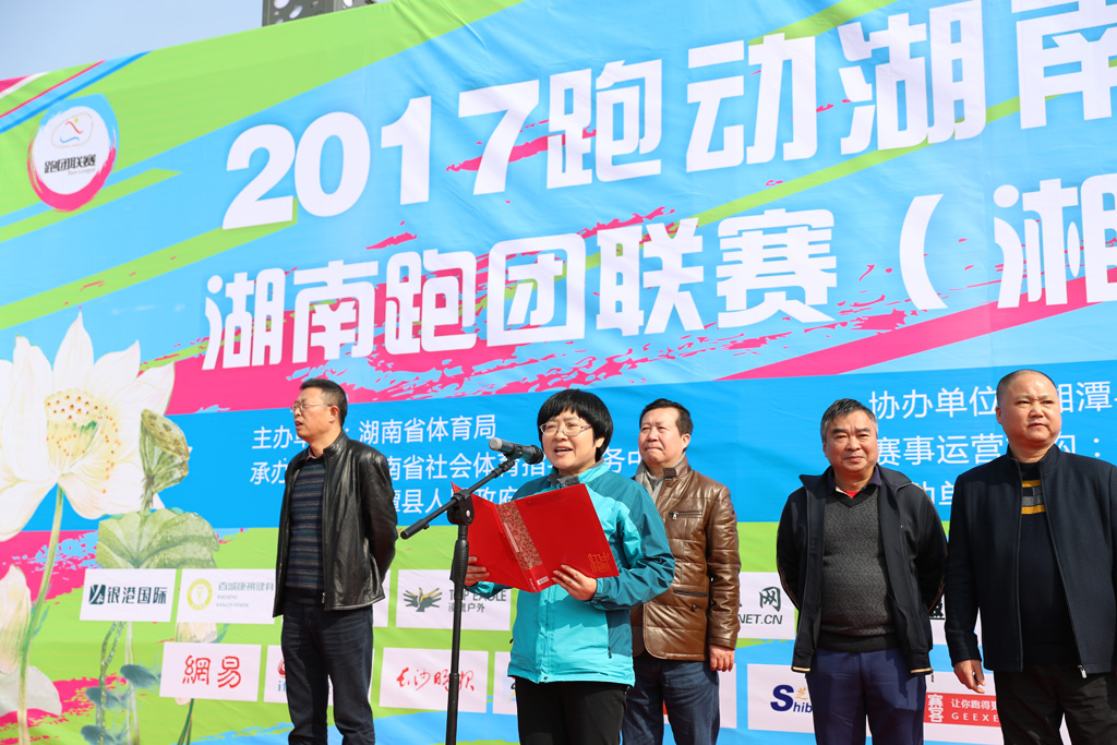 12月9日,2017跑动湖南·跑团联赛(湘潭县站)在湘潭县湘江风光带广场鸣枪开赛。图为开幕式现场。