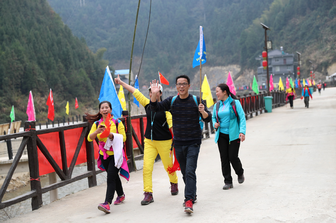 12月23日上午,2018“中国体育彩票”全国新年登高健身大会湖南分会场活动在怀化溆浦县朱溪村隆重举行。图为选手前往主会场。