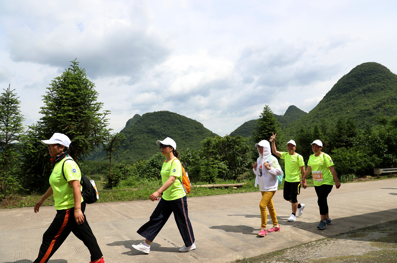 图为选手在徒步毅行中。