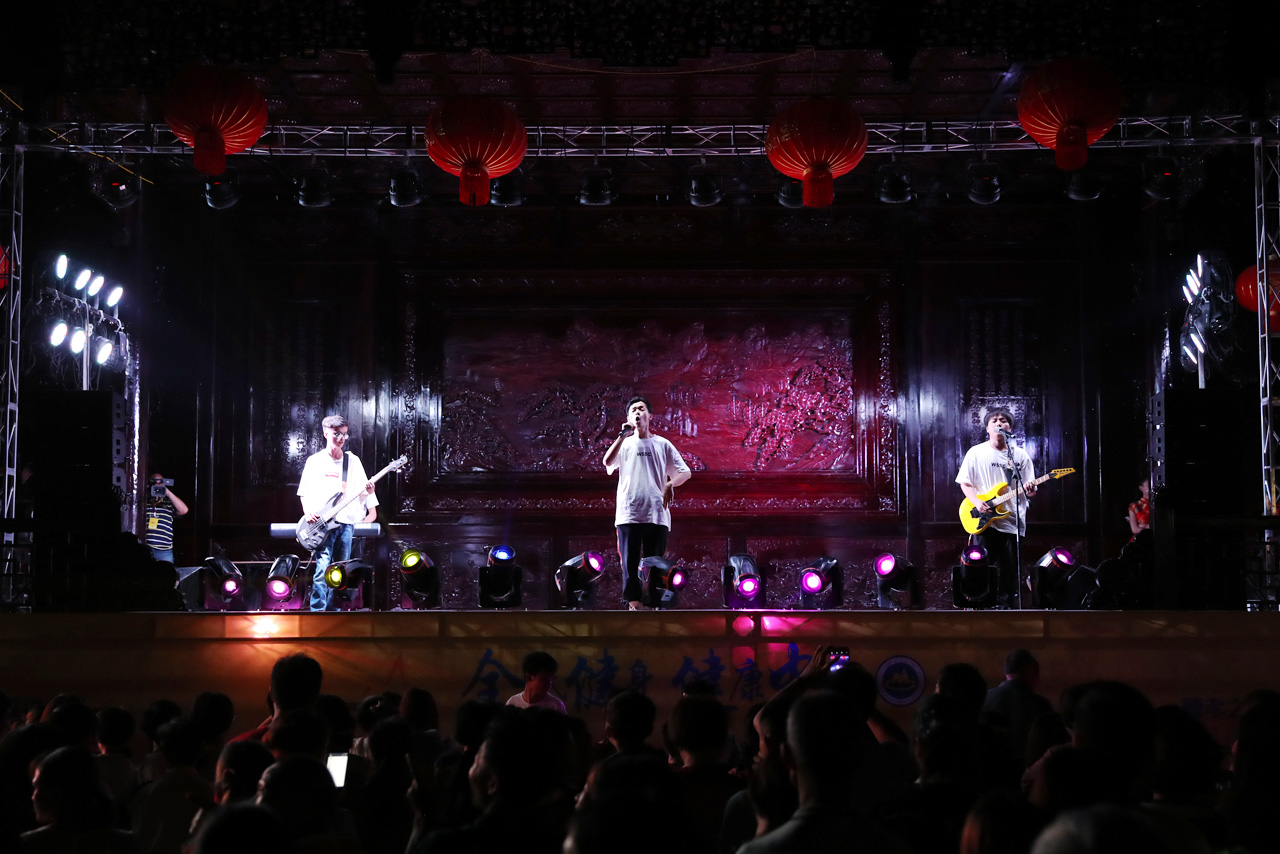图为下灌村麻将广场举行的趣味嘉年华音乐晚会现场。