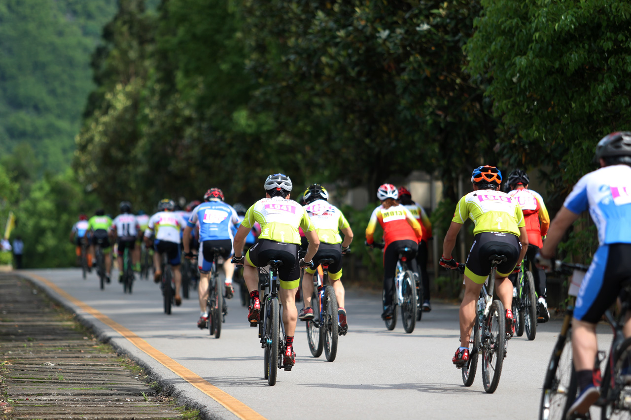 图为自行车联赛出发瞬间。