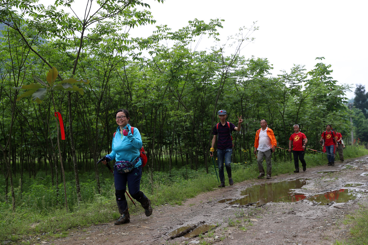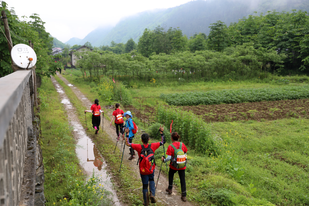 图为选手在徒步进行中。