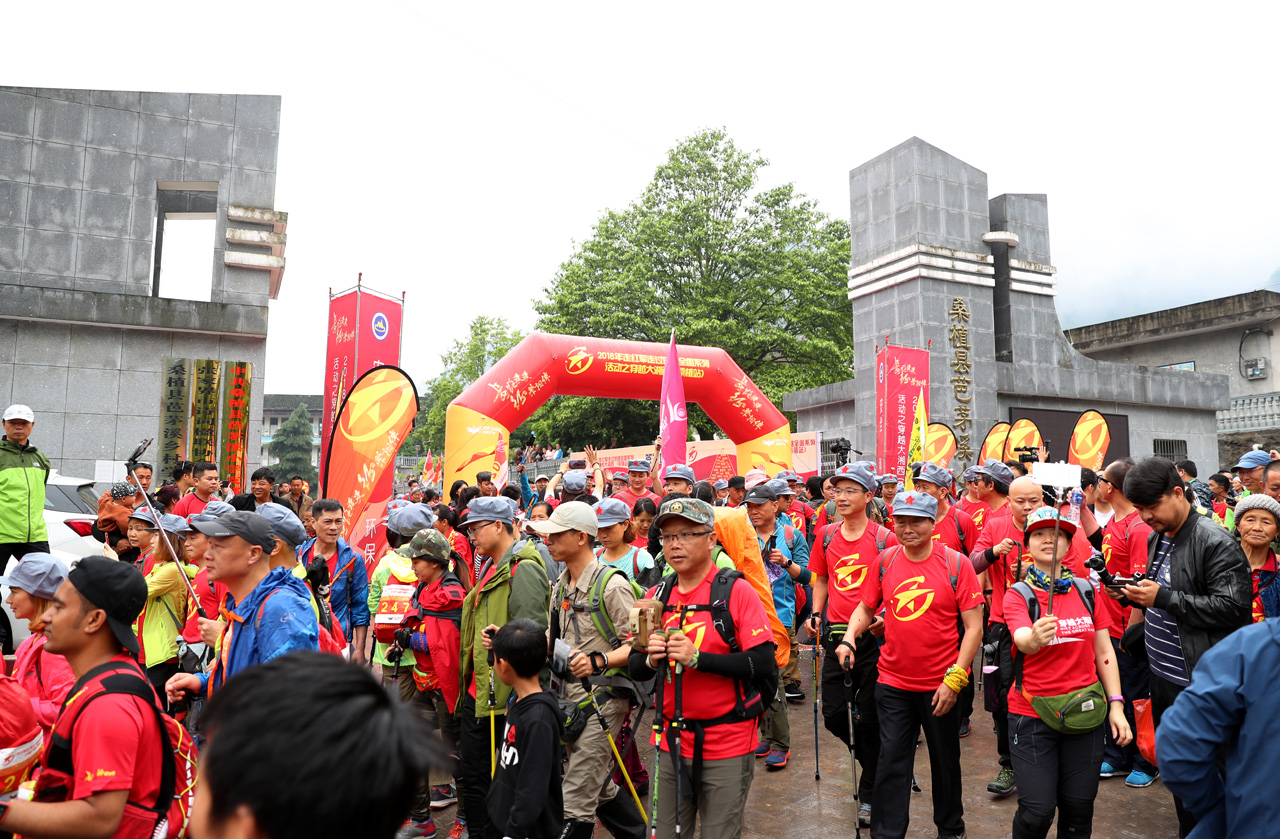 图为选手在徒步中。
