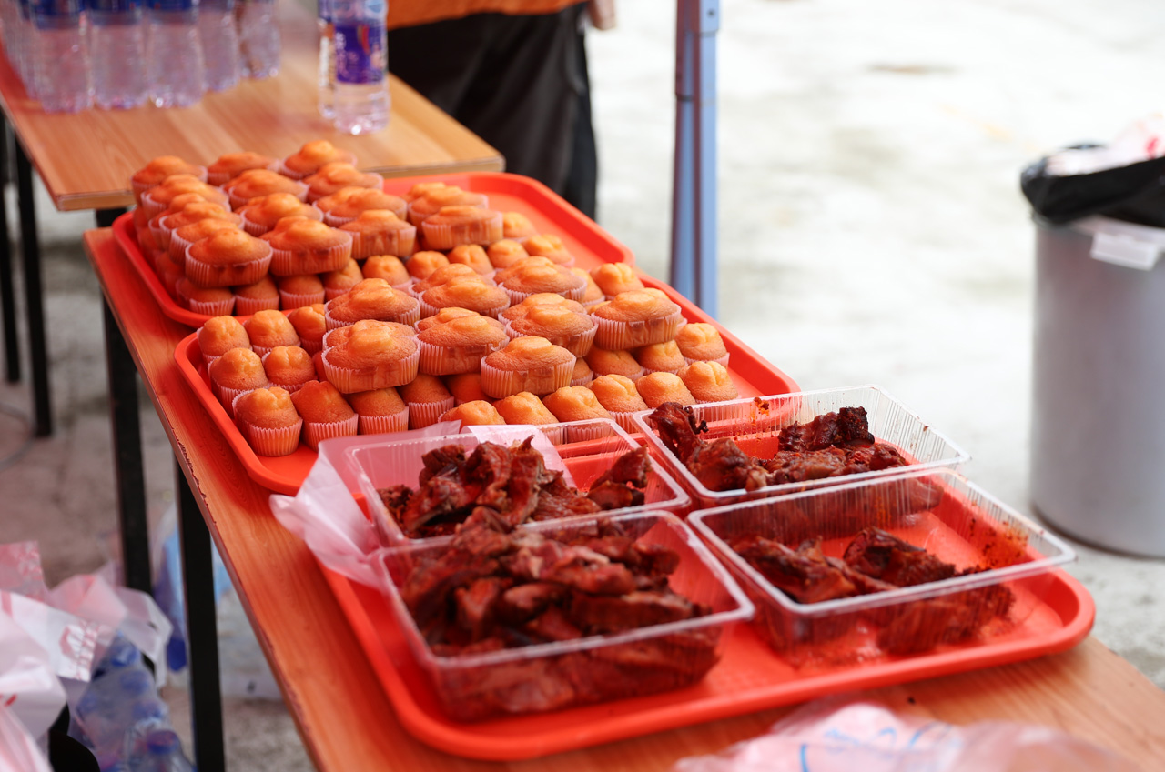 图为终点处为选手准备的美食。