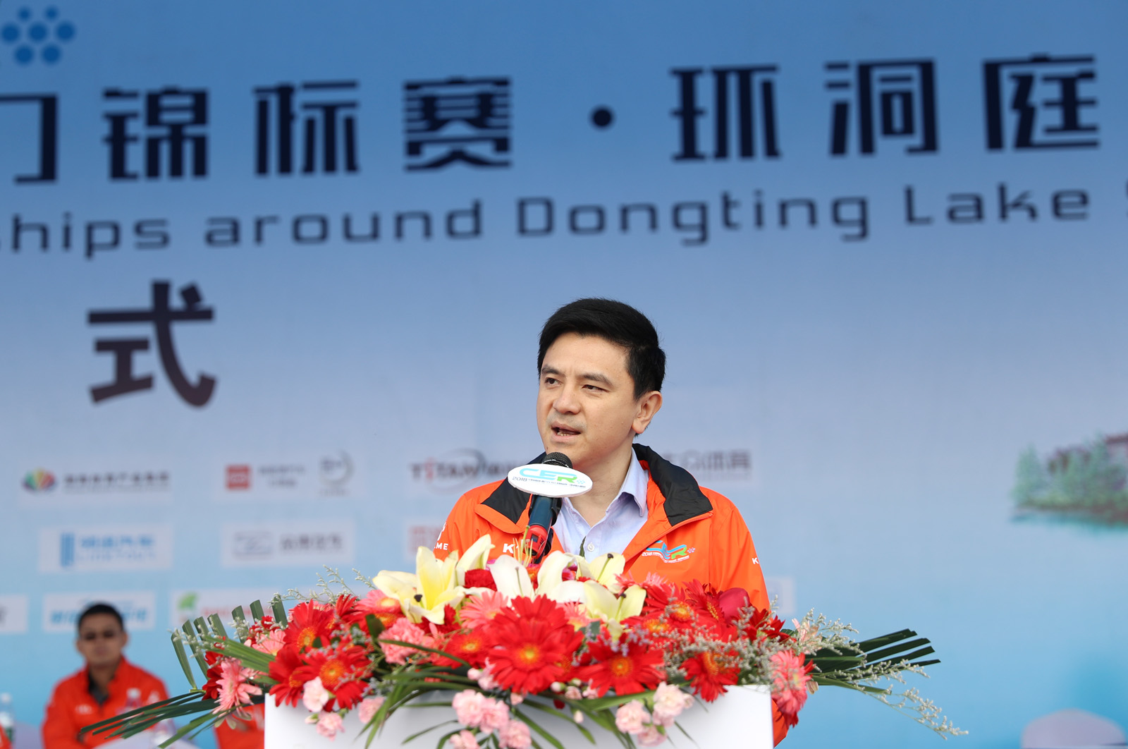 图为湖南体育产业集团有限公司董事长张敦南(右一)为最具人气赛段颁奖。