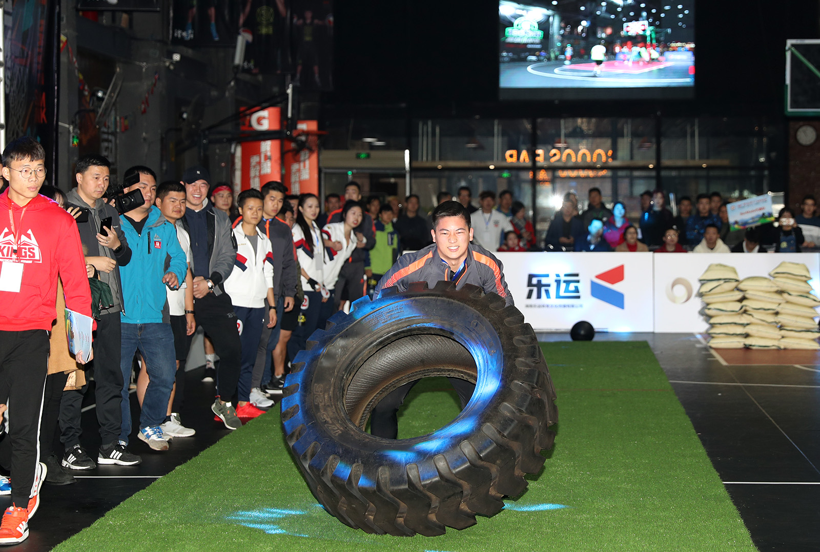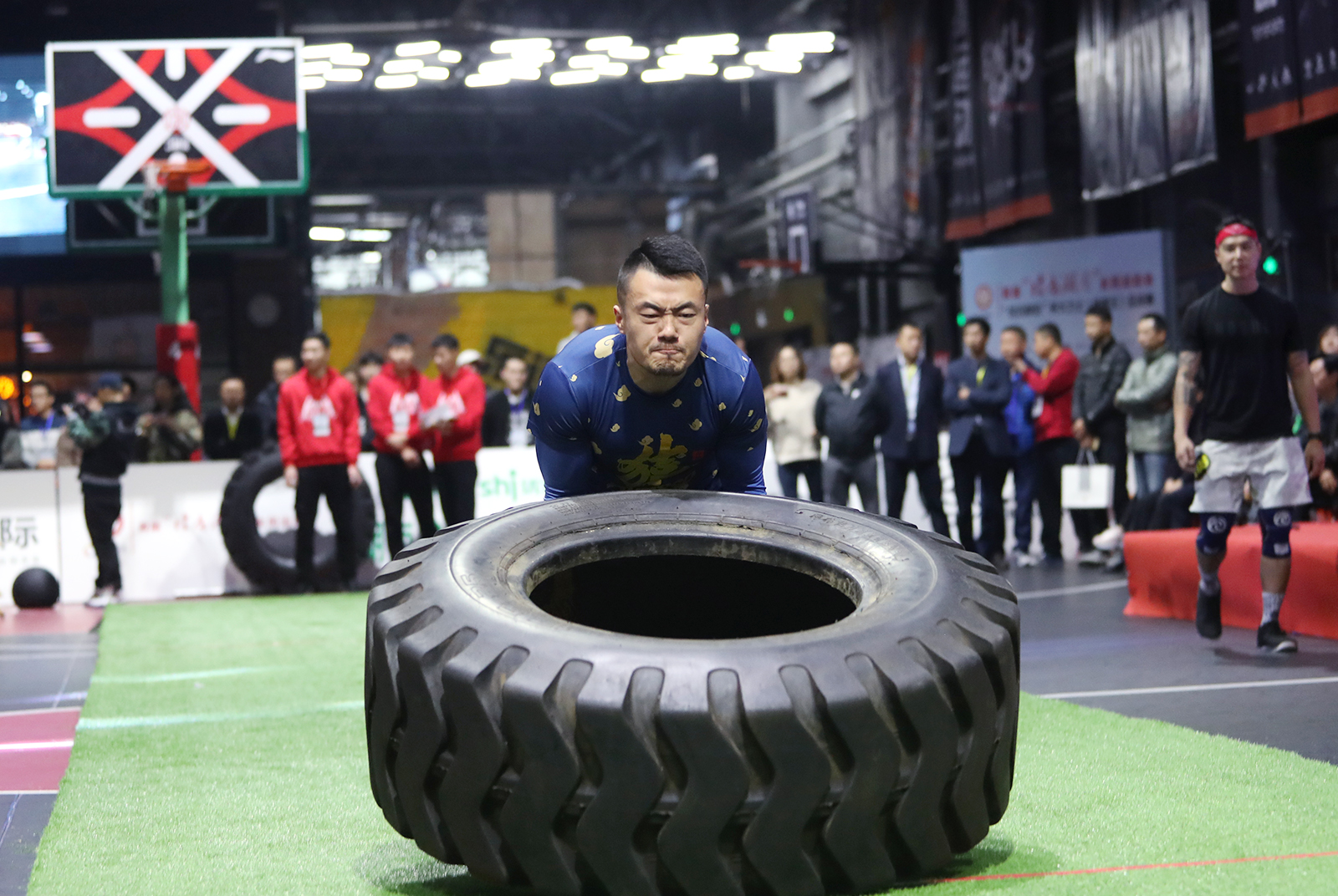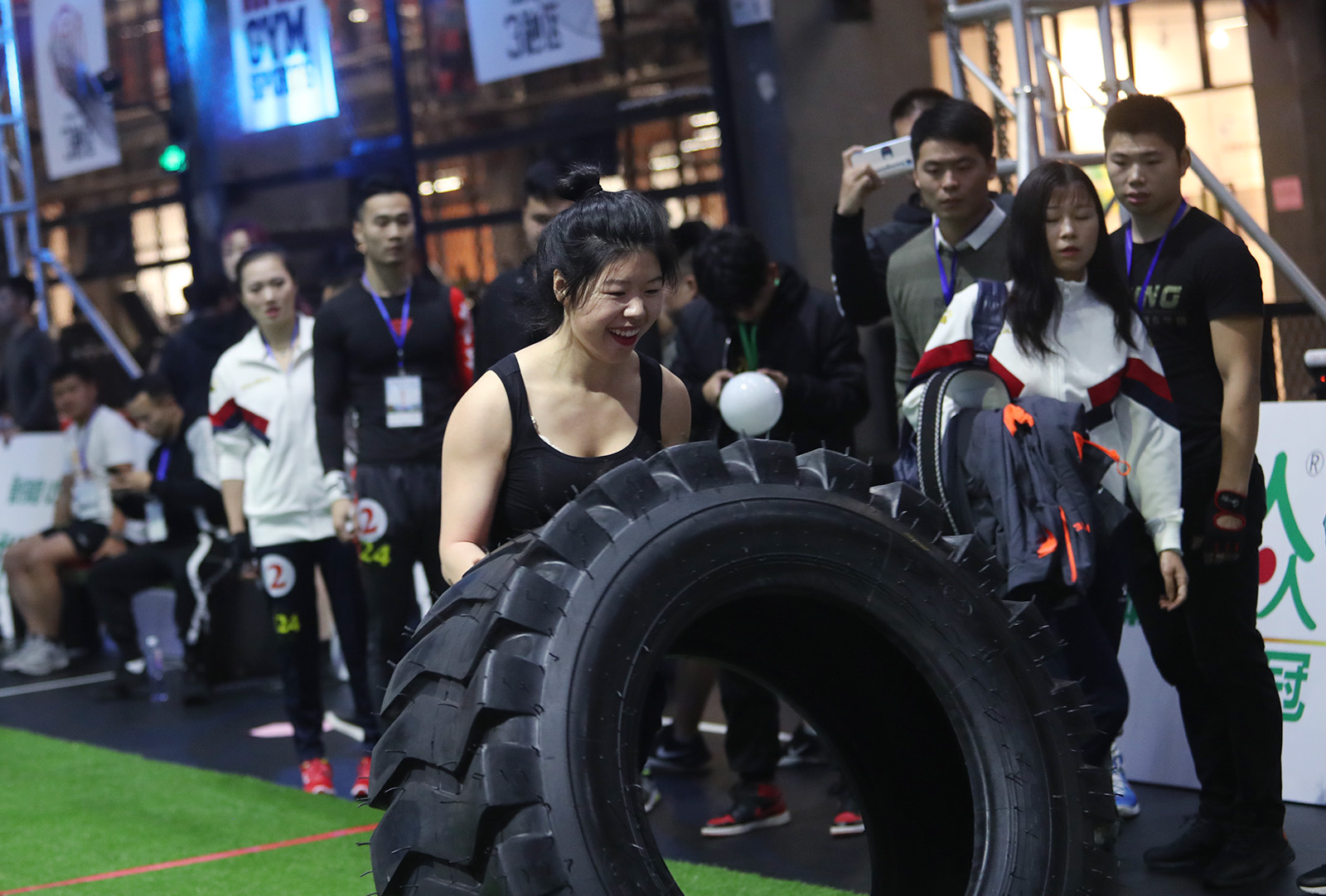 图为翻轮胎比赛精彩瞬间。
