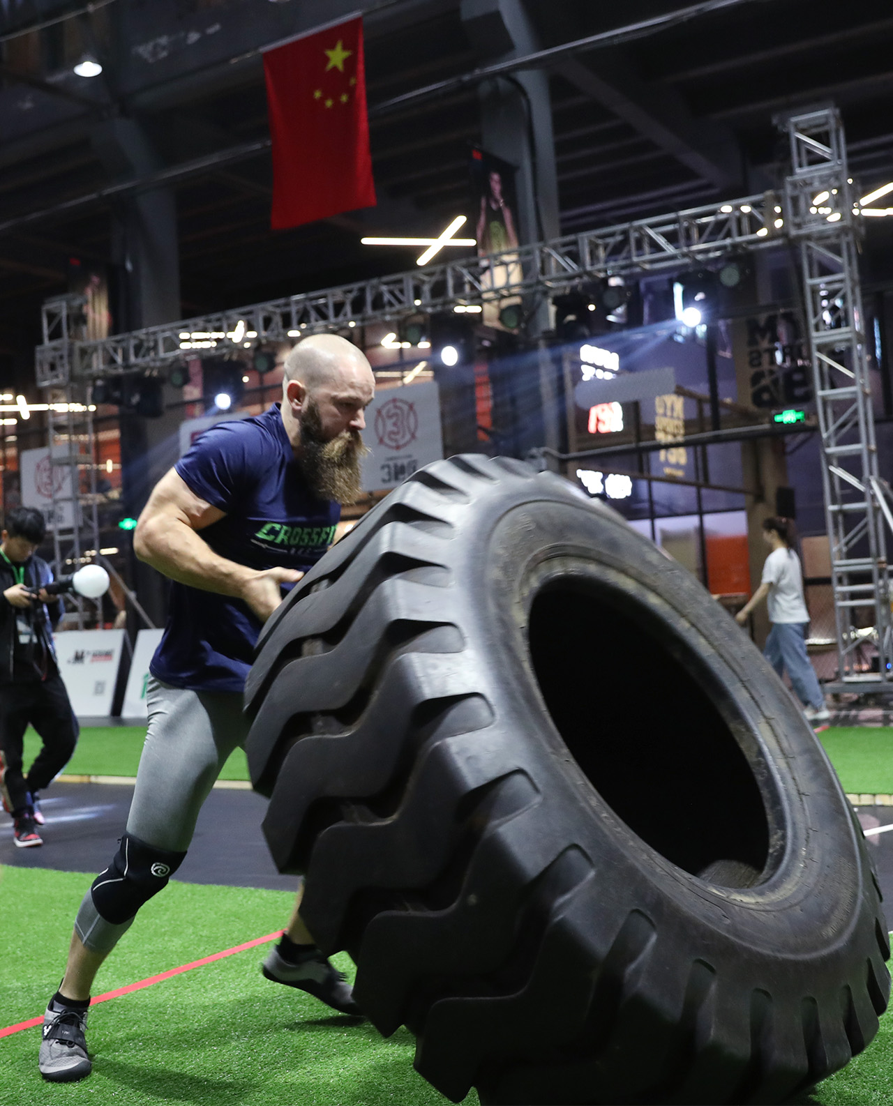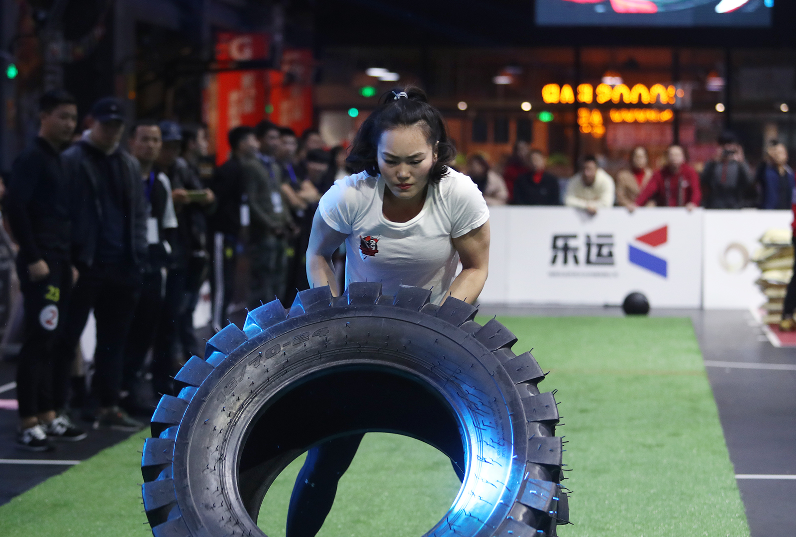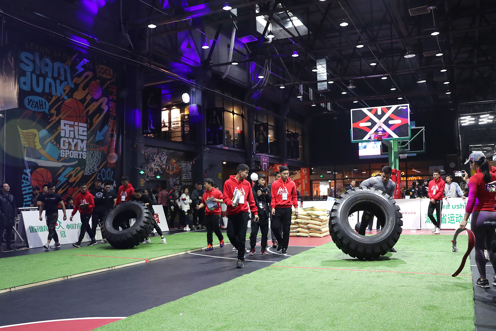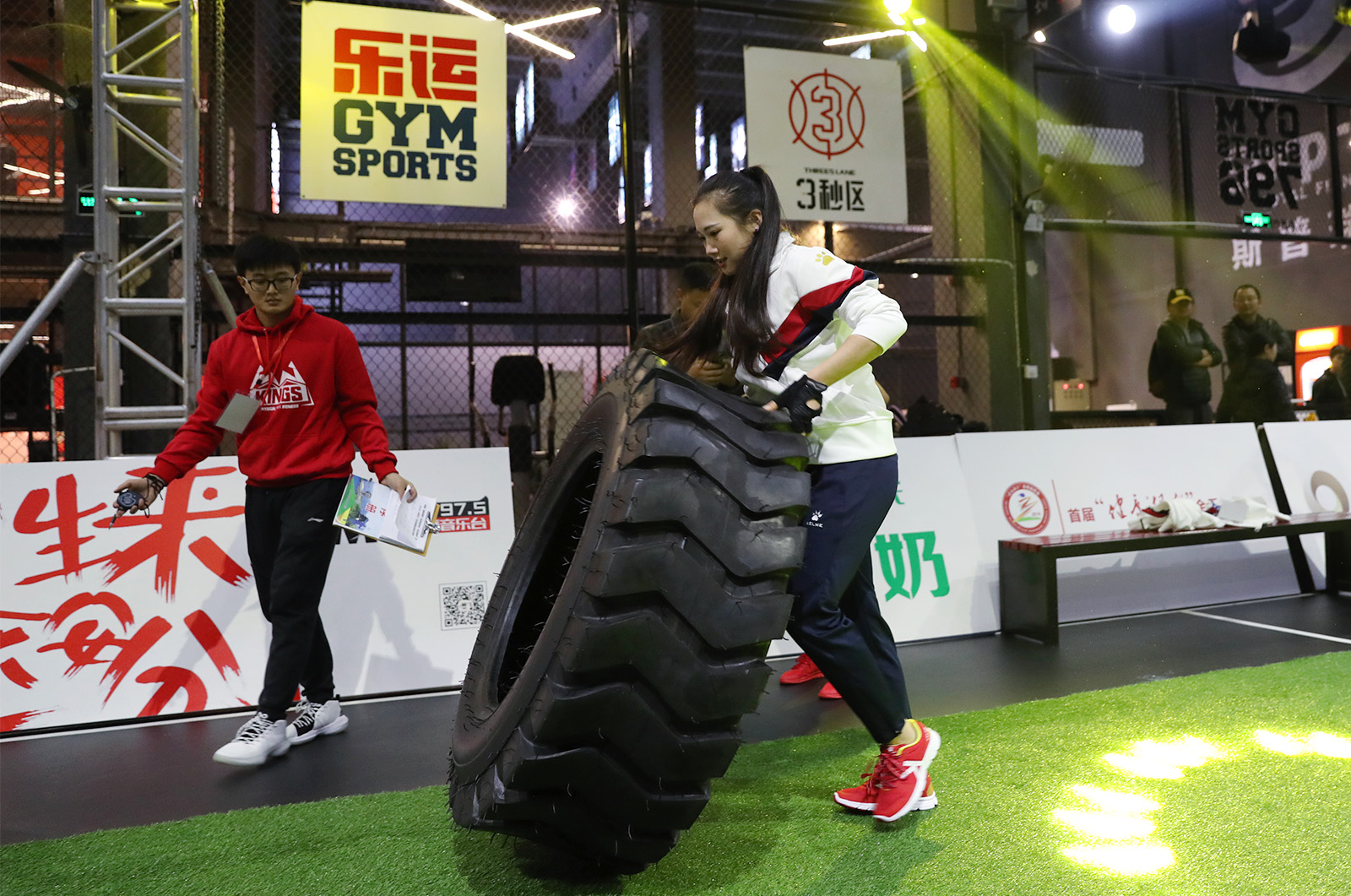 图为翻轮胎比赛精彩瞬间。