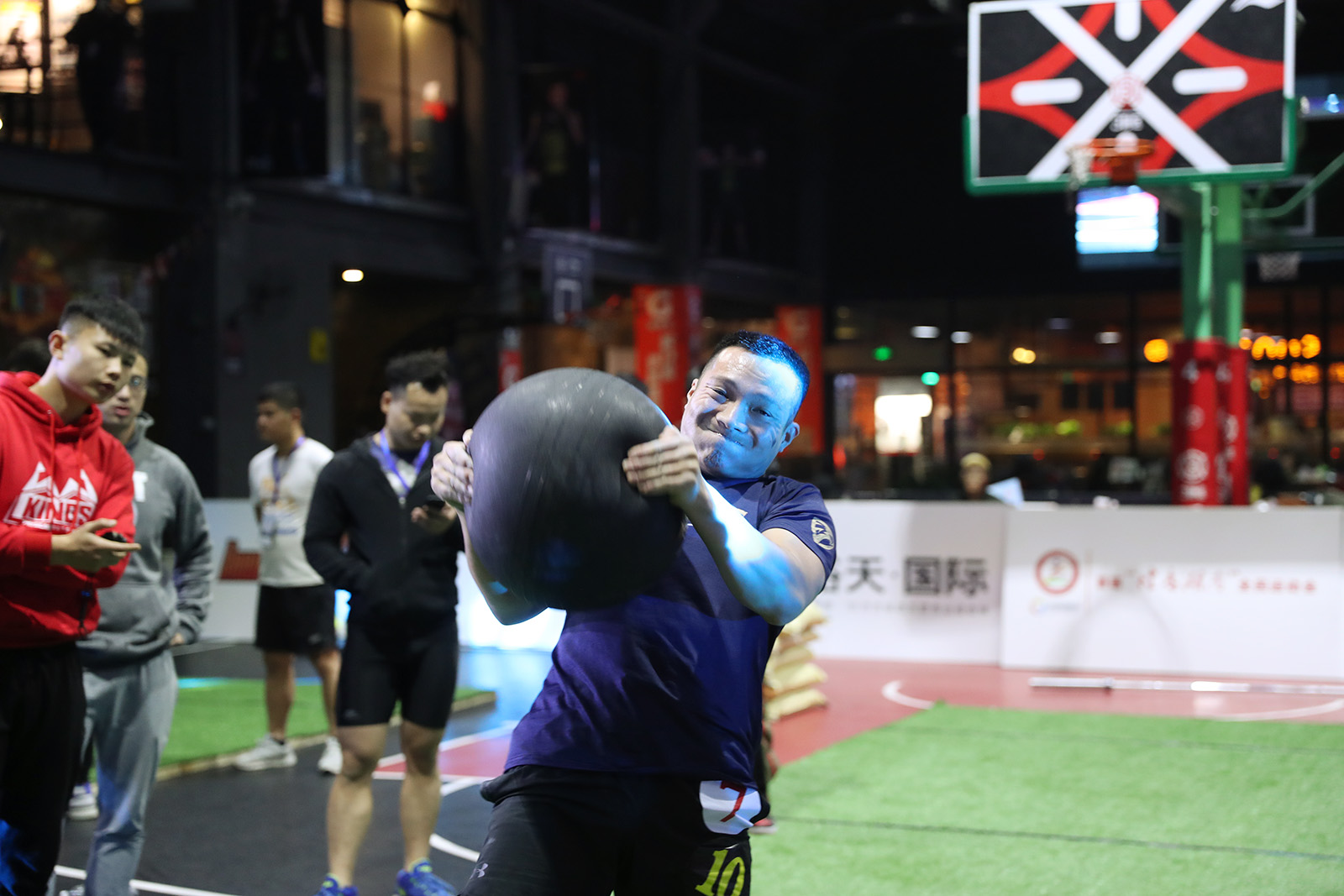 图为抱球过肩比赛精彩瞬间。