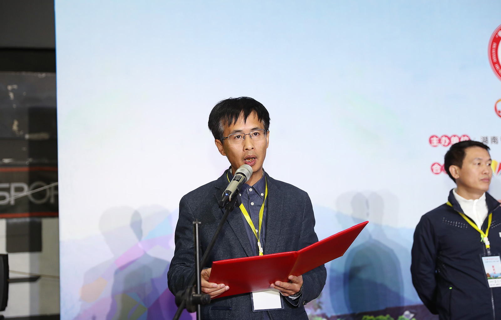 图为省体育局群众体育处处长傅黎明主持开幕式。