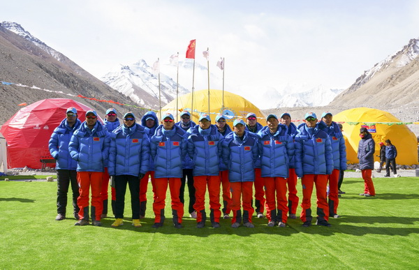 5月11日,由中国登山协会、西藏自治区体育局主办的纪念中国人首次登顶珠穆朗玛峰60周年、庆祝西藏登山队成立60周年系列活动在海拔5200米的珠峰大本营举行。